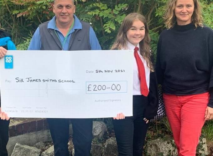 Sir James Smith’s School has been chosen as one of the three local causes for the Co-op’s membership scheme along with Delabole Skate Park and St Breward Guides.