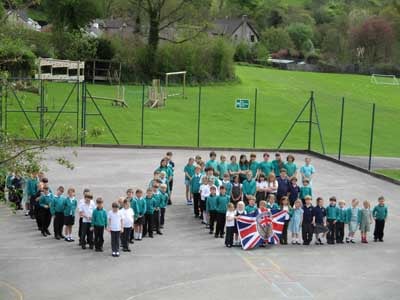 CHILDREN at St Neot Primary School formed a giant VE in their playground to mark the 70th anniversary of VE Day.