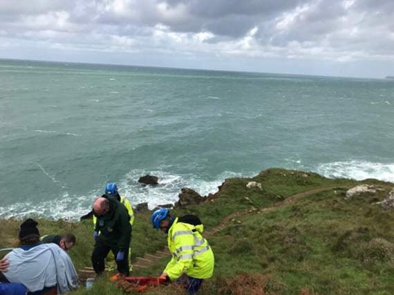 Despite the tricky location overlooking the coast, the team were soon able to stabilise the woman while two paramedics made their way to the scene.