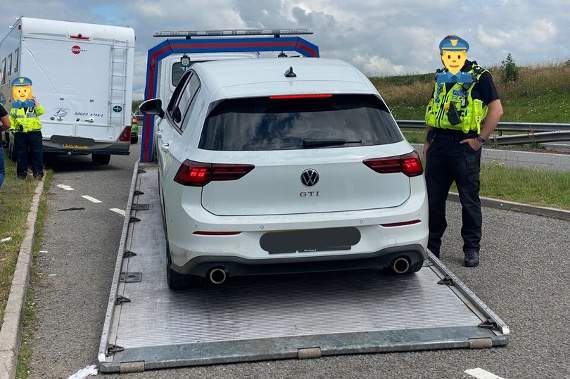 With their tweet yesterday evening, the police teams posted the above image of the Golf being loaded onto a lorry to be taken away, and with emoji faces covering the officers’ own identities.