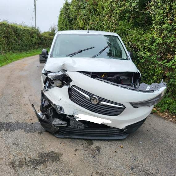 Officers put out photos of one of the two vans that collided at St Issey to show the damage done to the vehicle.