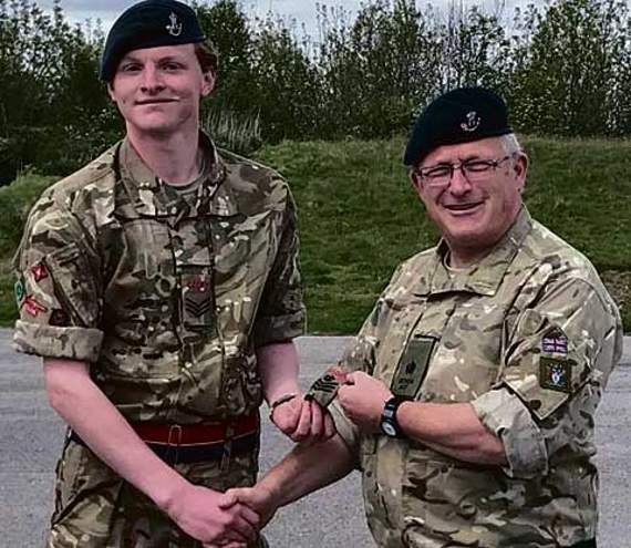 Cadet serjeant Jack Heal, aged 17, received the promotion to cadet staff serjeant during a company training camp in May from officer commanding for North Devon ACF Major David Price.