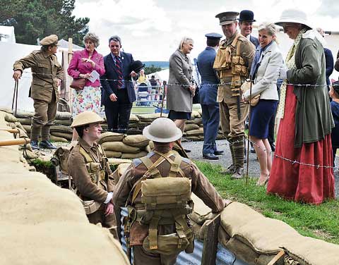 THE Countess of Wessex in between Nick Couch and Amanda Durden from Launceston, as they introduce her highness to Cornwall’s World War One Living History Group. Picture: Peter Glaser