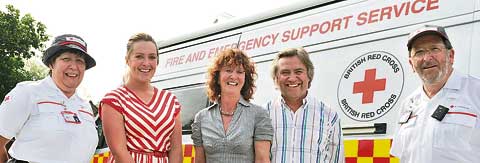 WITH the new FESS (Fire and Emergency Support Service vehicle), support workers and fundraisers, Kathy Glasson, Sara Loftus, Rosie Jackson president of Cornwall British Red Cross (BRC) and garden owner with husband Paul Jackson and Larry Glasson. Picture: Peter Glaser
