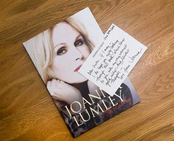“Joanna was unable to visit the home owing to her schedule but she remembered Susan fondly, and sent a hand-written note along with a signed copy of her autobiography, which was very gratefully received. Talk about making someone’s day!”