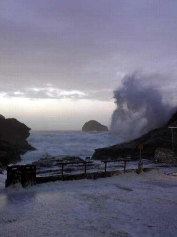 Camelford Police issued warnings to those living or visiting areas around the coast, such as Trebarwith Strand, which saw huge waves battering against the harbour, leaving masses of sea foam and debris in its wake.