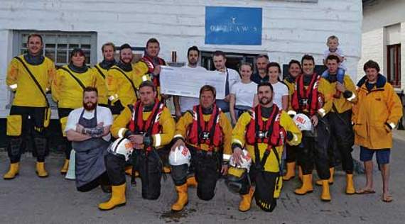 PORT Isaac RNLI annual lifeboat larks day got off to a bumper start with the donation of a £5,000 cheque, presented by the Nathan Outlaw Fish Kitchen team.