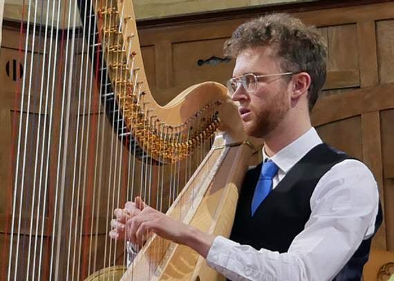 The visiting artist was Oliver Wass (harp). Already an experienced performing player he has an impressive list of achievements and he did not disappoint.
