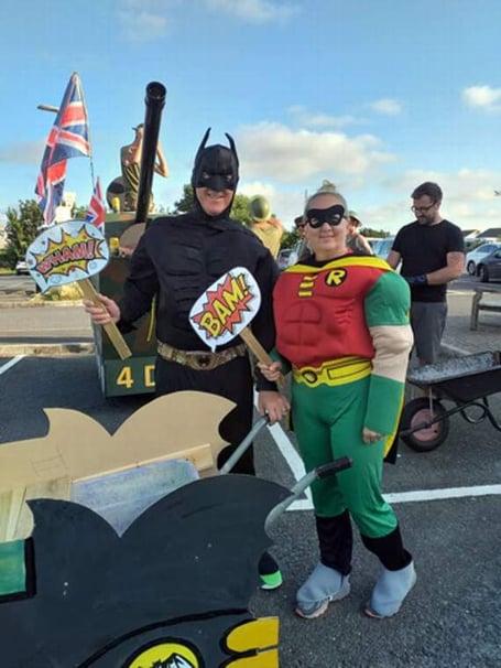 Then came the big race of the evening, the over 18’s race. With six teams entered, the race started at Tintagel Visitor Centre, the field dashed to the first refreshment stop at the Tintagel Arms, then on to the Cornishman, Wootons Hotel, turn and drink at the old Country Club Car Park. Further refreshment was taken at the Malt House and finally the King Arthur Arms with a final mad dash to the finish at Trevena Square. A very exciting men’s race was won by Ollie and Adam as ‘The Wallymen’, followed by Richard and Shane as ‘Aliens’ and third place went to Tolan and Stuart as ‘Cowboys’. The women’s race was won by Jane and Malcolm as ‘Batman and Robin’. The best fancy dress wheelbarrow prize was won by The Major Vena as an army tank.