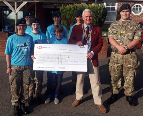 In June a team of cadets ran the Ruby Run relay raising £110 in sponsorship presented to to Philip Hackett president of Hatherleigh Rotary Club.