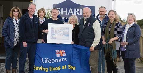 Port Isaac RNLI Committee, including West Country artist Barbara Hawkins, attended Sharp's Brewery to present a special edition signed, mounted and framed copy of the artist's painting, 'Preparing for Lifeboat Larks', created and donated to Port Isaac Lifeboat Station.