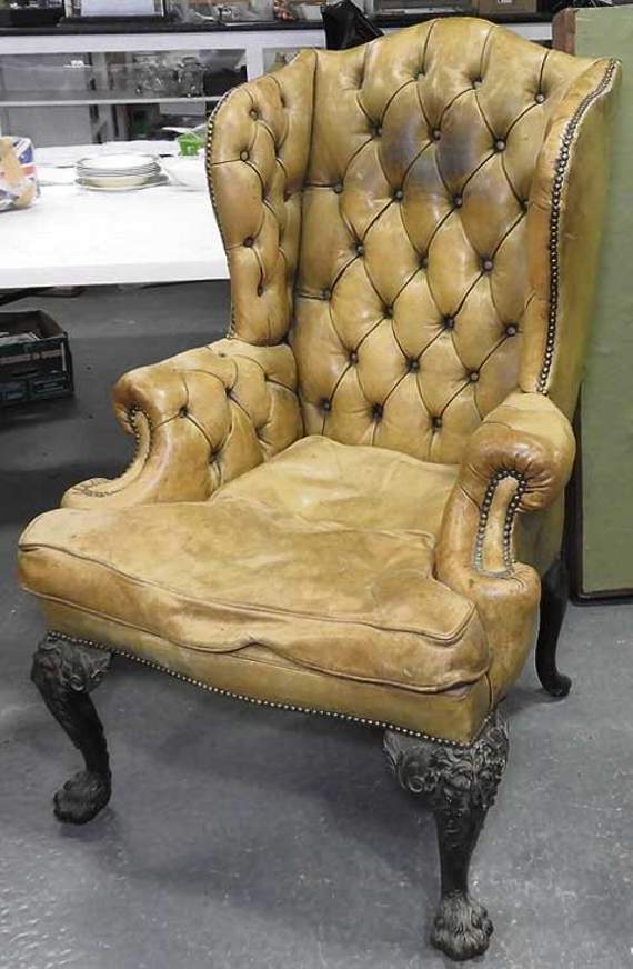 An Irish leather button back wing armchair with superb carved legs easily outstripped the pre sale guide to sell at £1,400.