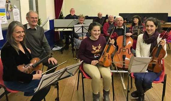 With their distinctive sound from a mix of harp, bassoon, concertina, clarinet, fiddle and guitar, the group intriguingly called ‘Cannon Fodder’ treated the audience to several lovely traditional west country tunes, mostly on a Christmas theme, and together with the piano, both folk fiddle and classical violin were on the programme.
