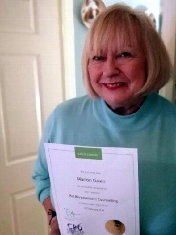 One local author from Launceston, Marion Gavin has just passed a higher distinction level three award in pet bereavement counselling. Marion is a trained counsellor with Cruse but has not worked for sometime.