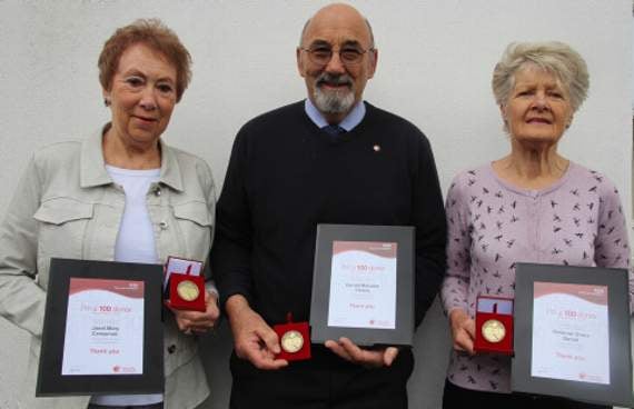 Vivienne Daniel, Janet Crossman and Gerald Thorne have been donating blood for years and have been awarded with a medal and certificate from the NHS Blood and Transplant group, in recognition of their ‘amazing generosity’.