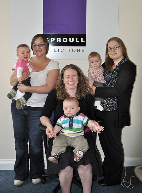 Last year saw a first for Camelford and Bodmin based Sproull Solicitors when not one but three of its employees announced they were pregnant! Around March last year Daniel Sproull was overwhelmed with the news that three babies would be due around the same time later in the year leaving him the task of finding maternity cover for two lawyers and his PA. Since then, Julie Rowan, Conveyancing Manager, Emily Moyle, personal assistant to Daniel and Julie Barr, Family Solicitor have given birth to Michael James Daniel, weighing 8lbs 4 ¾ oz on September 29, 2009, Isla Mae weighing 8lbs 1 ¾ oz on October 16, 2009 and Oliver Luca weighing 7lbs 1 oz on October 19, 2009 respectively (all pictured above). May saw the return of Julie Rowan and Emily with Julie Barr set to return in August this year. Daniel said, with tongue firmly in cheek: "We are known as a local family firm, but this is ridiculous!"