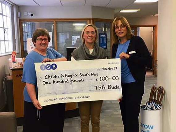Naomi Dymond, corporate partnerships fundraiser for CHSW’s Little Bridge House, said: “We are delighted to have been chosen as TSB Bude’s new local charity partner. The team’s support will make a really positive impact on our charity and the work we do here in Bude.”