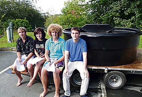 IT WAS a thrill for many on Sunday, September 12, to witness four young people from Chilsworthy baptised by total immersion. They were Josie Alford, Tom Musson, George Shepherd and James Smith. The event took place on a sunny afternoon outside Holsworthy Memorial Hall, with a large crowd of onlookers including family, friends and members of Rock Solid and local churches. The baptistry took the form of a cattle water trough, towed in by a Land Rover and trailer, and filled by the local fire brigade! The young people were baptised by Rev Beth McDowell, assisted by Peter Old, Mark Shepherd, Andrew Musson and Sue Banks.