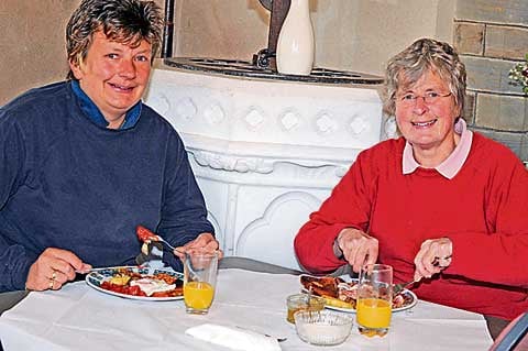 Tucking in to their big breakfast are Claire Salzmann and Sue Wilcox.