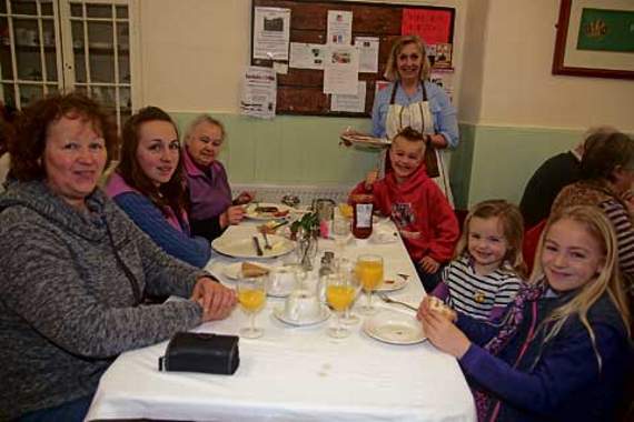 Volunteer Denise Perrin is pictured serving up breakfast to four generations of the Francis family from Egloskerry. Picture: Paul Hamlyn