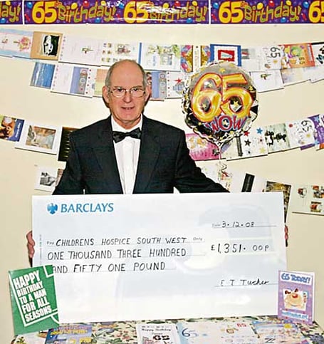 Trevor Tucker of Whitstone recently celebrated his 65th birthday with a party held at Hedley Wood Caravan Park, Bridgerule. Donations in lieu of gifts were received for Children's Hospice South West. The total raised was £1,351. Trevor thanked his guests on the night and also all of his friends who could not make the party but had sent donations. Trevor then revealed where all the fund raising money had gone since 1986: Leukaemia Fund (£570), Cancer Research UK (£1,223.50), Air Ambulance (£325), Wheelchair Fund (£220), Disabled Children's Home (£383), Heart Foundation (£50), Multiple Sclerosis (£330), Epilepsy (£1,460), CLIC (£170), Macmillan Nurses (£280), Breast Cancer (£1,000), Peninsula Medical School (£1,250), Children's Hospice South West (£6,036), making a total of £13,297.50. Trevor then said, he may be 65 but he was not stopping yet. His next plant sale will be in April 2009 and he said he was looking forward to seeing everyone then. "Thanks once again," said Trevor.