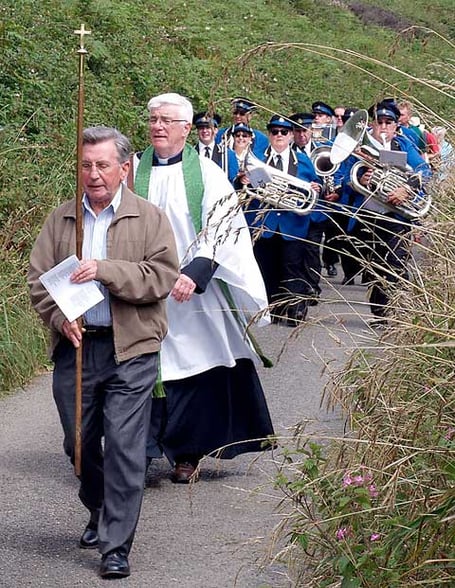 Following a procession from King William's Bridge, led by Bude Town Band and with Arthur Bryant carrying a ceremonial cross, the service attracted a large group of worshippers.
