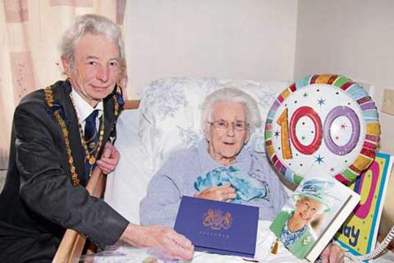 Mrs Whale also received a visit from the mayor Brian Hogan and deputy mayor Margaret Young, and was handed a bouquet of flowers and a card for her special day.