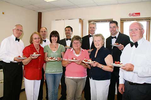 The following afternoon, strawberry cream teas were served by the men of the hall committee dressed as waiters and Torridge Male Voice Choir provided a concert of light music with an element of the Last Night of the Proms for all to join in.
