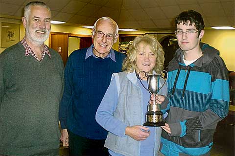 The County Bridge Teams of Four Championship was won by the Wadebridge team of, from left, Dave Mattos, Brian and Elaine Relton and Josh Saitch, an 18 year old 'A' level student at Truro School and this was his first win at county level. Geoff Warren and Bill Thompson (Truro), Chris and Sandra Bickerdike (Helston) were second.