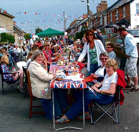 ROYAL CELEBRATIONS AT BUDE: A great time was had by all at the Victoria Road street party in Bude on Royal Wedding Day. Front table, from left: Janice Haynes, Helen Griggs, Marcia Burrows (seated), lady standing, Sharon Marshall. Picture: Des Sampson, Bude.
