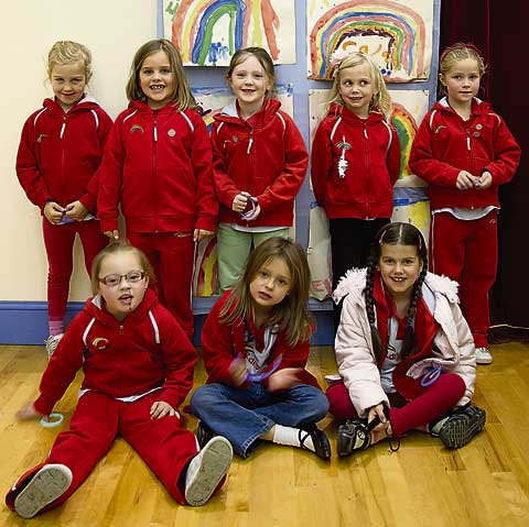A beautiful cake made by Clair Roberts was cut by the youngest Rainbow and a leaving gift presented to Mrs Judith Slinn. All were superbly entertained by Passing Showers, with lots of circus fun and audience participation.