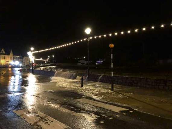 “Businesses along the Strand seemed prepared with sandbags in doorways, as is normal when flooding is expected here, but thankfully the water did not reach the point of entering any property. Seems the wall was only being over topped when the large tidal bores came down the river, which was how the water built up, and generally the flood defences help up well to the water level.”