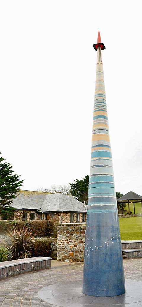 An orange cone mysteriously appeared on top of the Bude Light recently. These three photos, taken by Paul Gunner of Imageworld, show the cone in situ; an council worker being raised up to remove the cone and (above, right) finding a new home for the said article!