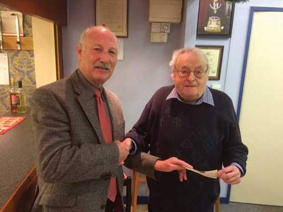 A cheque was presented to Ray Shaddick, the chairman of the Bude, Stratton and District Cancer Research UK Committee and member of the lodge by the secretary Keith Taylor. Ray, on behalf of all present, thanked everyone concerned with the organisation of the event and the generous donation. He also pointed out that Masonic charitable work in general and that by Granville Lodge in particular covers a wide range of charities and organisations with funds often being distributed locally. He wished everyone a happy Christmas and peaceful New Year.