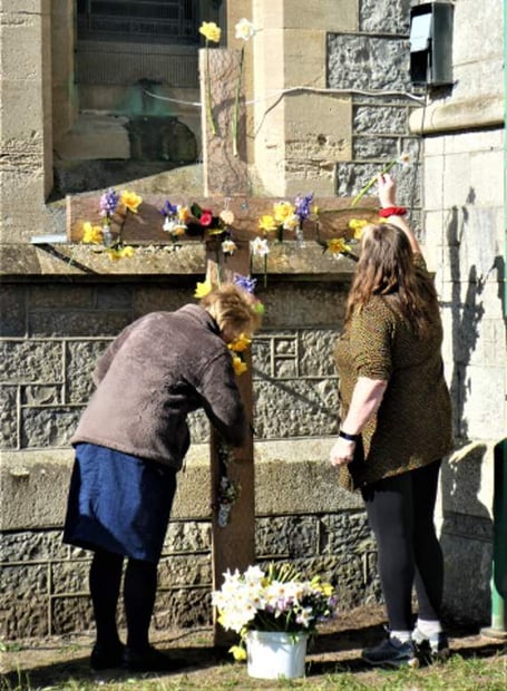 With the church being closed this Easter, Deacon Debbie Marsh decided to erect the cross outside to ensure people can still enjoy this yearly tradition.