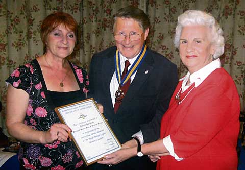 Twenty years service was recognised at a recent meeting of the Bude and Stratton branch of the Royal British Legion. The President, Paddy Kyle, presented the long service award to Andrée Horwood, the Women's Section Standard Bearer. Andrée was both surprised and delighted to receive the framed certificate, and hopes she will continue attending functions whenever the standard is needed. The Women's Section Chairman, Helen Bensley, said that their section had decided it was long overdue that Andrée's service be recognised.