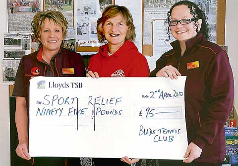 Bude Tennis Club held their own events on Saturday, March 20 and kindly donated all their proceeds to Sainsbury's Bude. Joan Coney of Bude Tennis Club presented a cheque in store for £95 to Lesley Blake Bertram and Beckie Chirgwin (PR Ambassador).