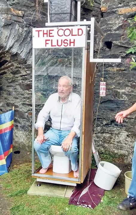 David Lamond said he was ‘soaked to the skin’ after a stint in the toilet at Boscastle Harbour, where a number of people took part in the challenge to empty the cistern. Picture: David Flower