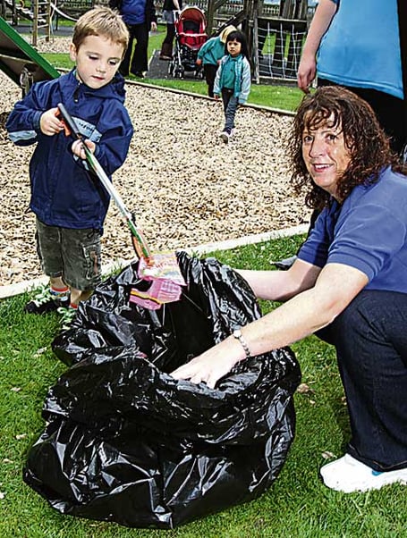 CHILDREN, staff and parents — along with street ranger, Debbie Ebsary, and John Gilbert, town council park keeper — took to clearing litter from Enfield Park, Camelford on Monday in preparation for 'Clean Cornwall Week' (September 18-26).