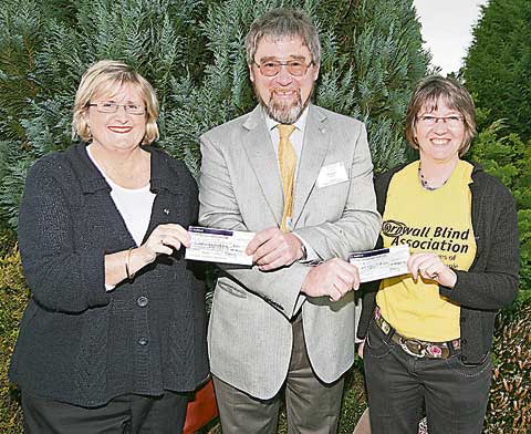 Two cheques, each for £250, were presented to representatives of the Cystic Fibrosis Trust and the Cornwall Blind Association by Rob Round, President of the Camelford Rotary Club last week. The club's donation to the Cornwall Blind Association will support and develop services for the visually impaired in the county. The charity's Community and Events fundraiser, Debbie Henshaw, received the cheque and said: "We are delighted to receive support for our Cornish charity as without donations from local people we couldn't provide all our services to those with sight loss across the county." Cornwall Blind Association was initially set up 150 years ago for miners who lost their sight in mining accidents. Today, support is given to those with a range of sight conditions and help is given through Low Vision Clinics, benefits advise, access technology for computers, counselling, talking support along with access to varied leisure activities such as shooting, swimming and dancing aim to improve the lives of visually impaired people locally. Debbie added: "This cheque is such an encouragement and we are especially grateful to all those individuals who have been so generous." The Cystic Fibrosis Trust is the UK's only national charity dealing with all aspects of Cystic Fibrosis. The trust funds medical research aimed at alleviating the symptoms of, and finding an effective treatment for Cystic Fibrosis, which is caused by a single faulty gene that controls the movement of salts and water through the cells of the body. This means the internal organs, especially the lungs and gut, become clogged with thick sticky mucus making it hard to breathe and to digest food.