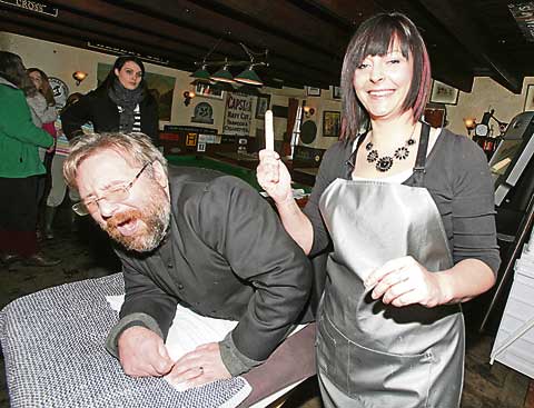 WAXED: Rev Jim Benton-Evans is pictured above with Naomi Luke of Style Counts, Camelford.