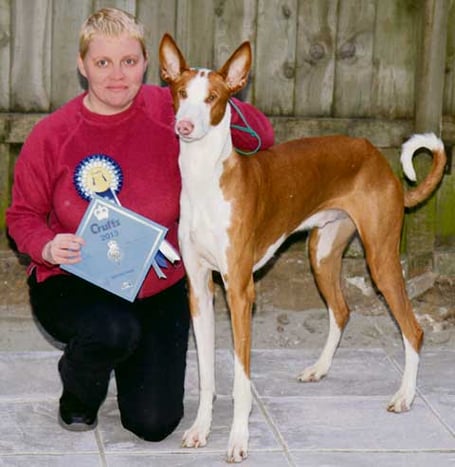 Bolt is jointly owned by with Miss R Hozempa. Mrs Carter also attended Crufts with her four other Ibizan Hounds.