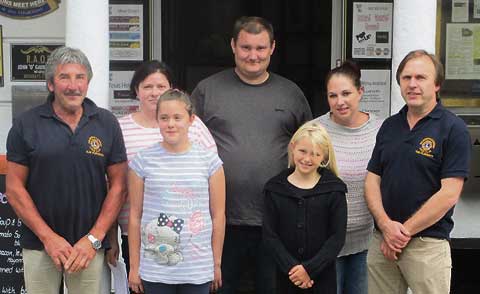 RAY Fursdon and Ted Flaherty of Holsworthy and District Lions, with carnival queen Paige Davies, Vicky Davies, Michael Davies, fairy queen Zara Kepple and Lisa Kepple