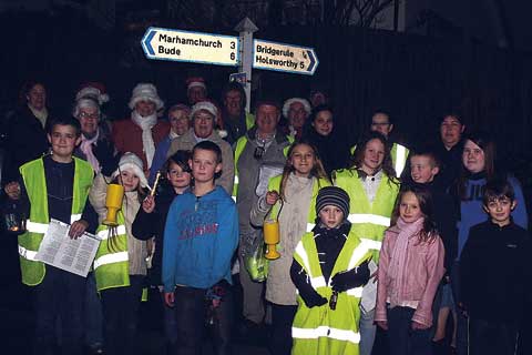 A GROUP of villagers from Bridgerule ventured out of their homes on the evening of Wednesday, December 21, to take part in the traditional carol singing which has been taking place for at least eight years. Around 25 people, including children from ages seven to twelve, raised a top total of £147 which was divided equally between the church, chapel and school. Unfortunately, due to bad weather, the school's carol singing event was rained off the week before, but this failed to prevent organisers Chris and Rose Hitchings, who had been arranging the night many months in advance, from taking part.