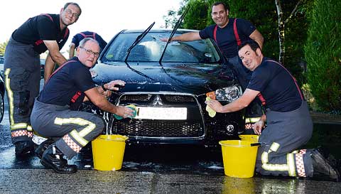 DELABOLE Firefighters held a charity car wash on Tuesday, September 3, at Delabole Fire Station, raising around £100 with 20 cars — but had to attend two calls during the evening.