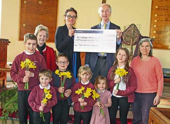 Cornwall 100 Club members Louise Oldham from Cornwall Glass/Dunheved Glass and Tim Smith from Nevill Hovey met volunteers and children from Werrington Primary School.