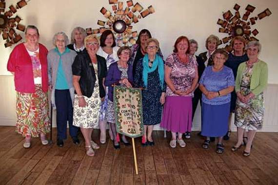 President, Shirley Bell, welcomed everyone, especially the guests of honour, Barbara Corbett, chairman of Cornwall Federation of Women’s Institutes, and her husband, and WI adviser, Kathy Reid. She asked Barbara Corbett to say Grace. There was a marvellous spread of cold meats, salmon, salads and hot potatoes to choose from.