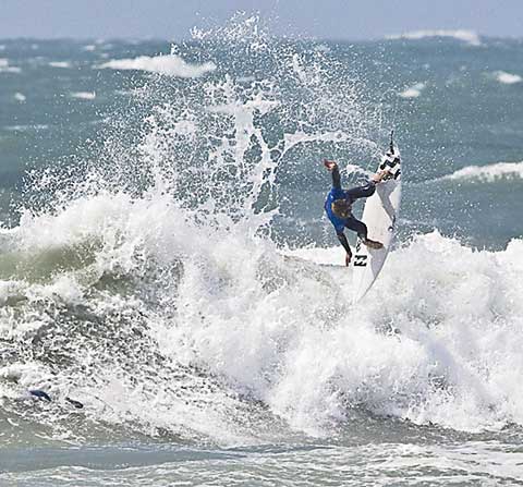 As the tide on Saturday dropped, conditions deteriorated, with gale force winds and increasing surf size. After only the first round of grommets heats completed Phil Williams (contest director) felt it wise to put the contest on hold till Sunday morning, leaving the challenge of getting through 38 heats in one day. Many prayers were said overnight to rely on the Creator to abate the storm.