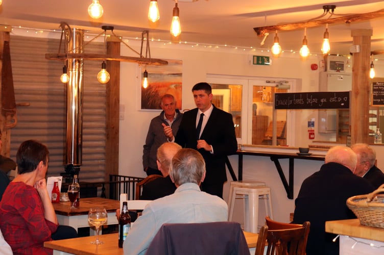Prior to the event, Mr Mann had been re-appointed to the Whip’s Office and local county councillors including Cllr Shorne Tilbey (Cornwall councillor for Stratton, Kilkhampton & Morwenstow), Cllr John Conway (Launceston South) and Cllr Barry Jordan (Camelford & Boscastle), as well as some 40 attendees, listened as Mr Mann went into detail about his new position and his regret at leaving his previous post at DEFRA.