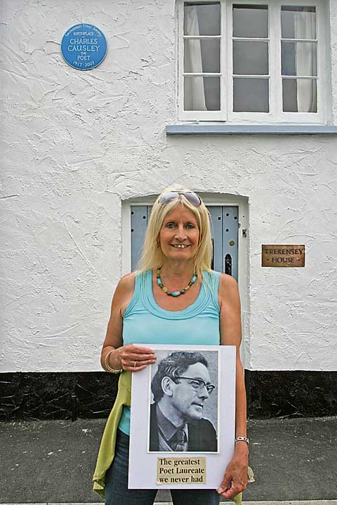 Jane Nancarrow led a walk around the town reading some Charles Causley poems at appropriate points. Starting with 'Eagle one, eagle two' outside the Eagle House Hotel, the band of 50 followers moved on to St Mary Magdalen Church to hear 'Mary, Mary Magdalene.'